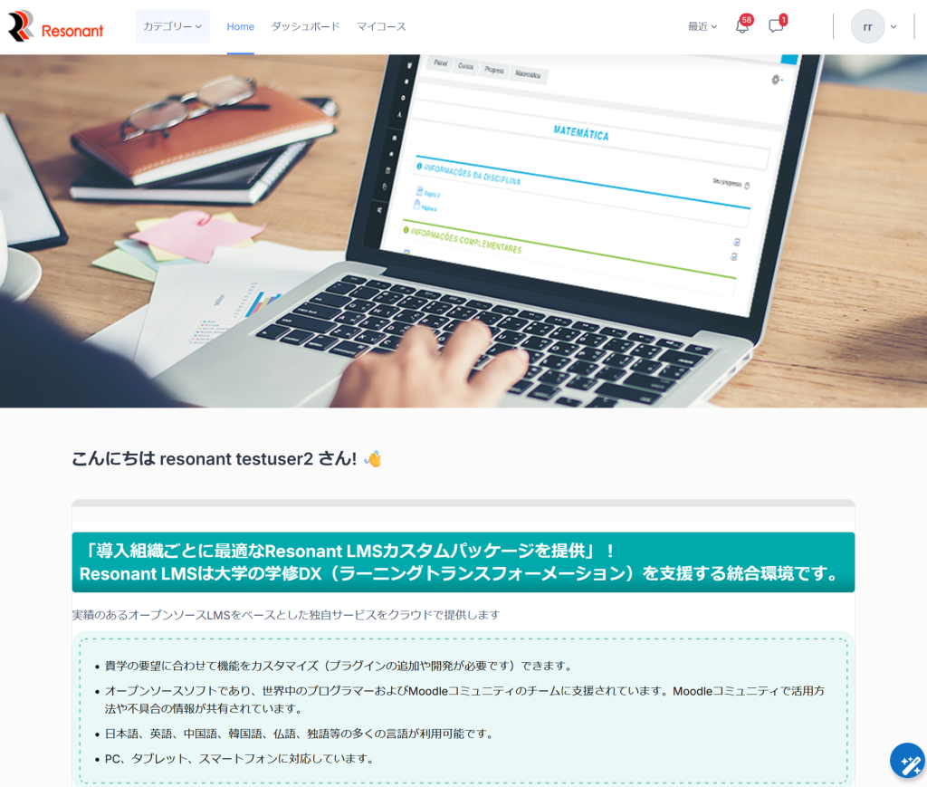 「進度バー」、Resonant LMS (MoodleベースのLMS) に関しまして、下記の「問い合わせフォーム」からお気軽にお問い合わせください。