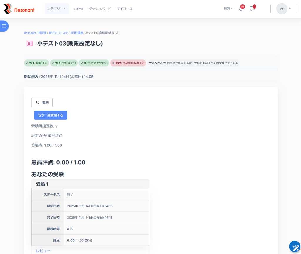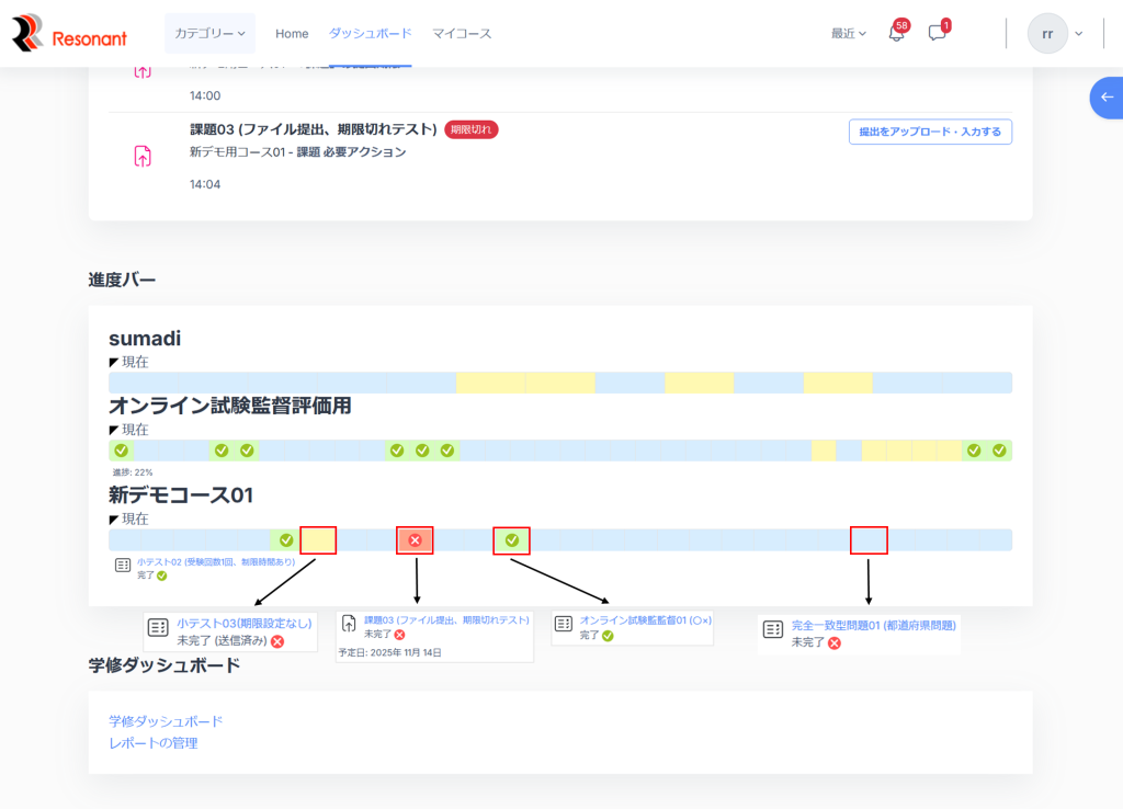 これにより、学生と教員の双方が「コース全体の進捗状況」と「次にやるべきこと」を一目で把握できるようになります。
