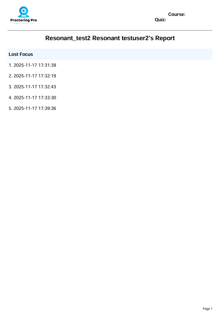 9.「Proctoring Report」の下にあるダウンロードボタンをクリックすると、PDFでログレポートがダウンロード可能
